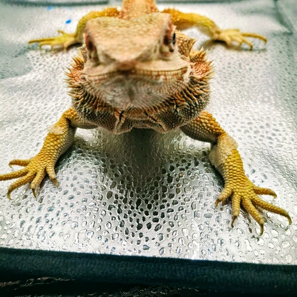 Unagi is an awesome girl. She’s very social and loves pets. She has been to the vet and cleared of any infection. He says shes strong and healthy but she makes this poof sound. Vet says she has extra room and extra cartilage in her beard and is learning still that she can take in twice the about of air a normal bearded dragon can and there’s a possibility of holding food in that space but she hasn’t with me. She does need to be on an incline for 30 minutes after food just to make sure that never happens. But shes happy and healthy and eats so well. She just can’t be bred. Her babies would more than likely.have that genetic anomaly and thats not good so I just need a home ready to love her. Local pickup would be nice but I can ship too. If we’re shipping I can work with you on the price. I just want her to find a good home.